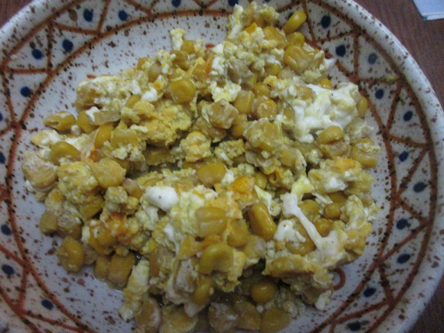 で、コーンと玉子のスクランブルエッグも作りました。