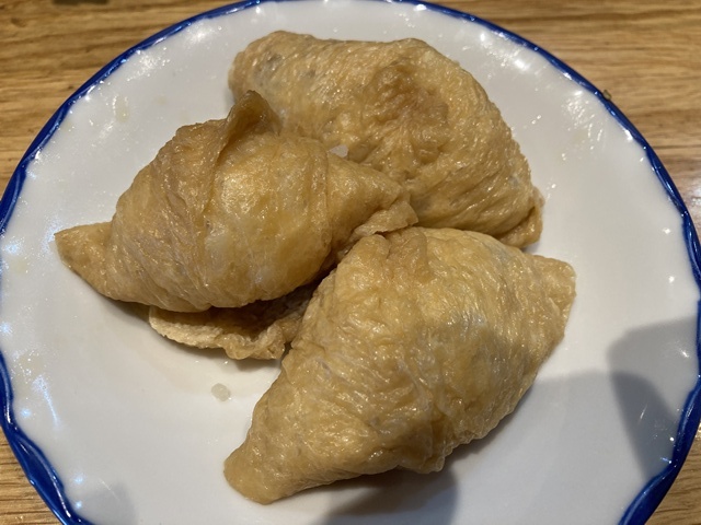 肉ごぼう天うどん、700円と いなり、200円の昼食