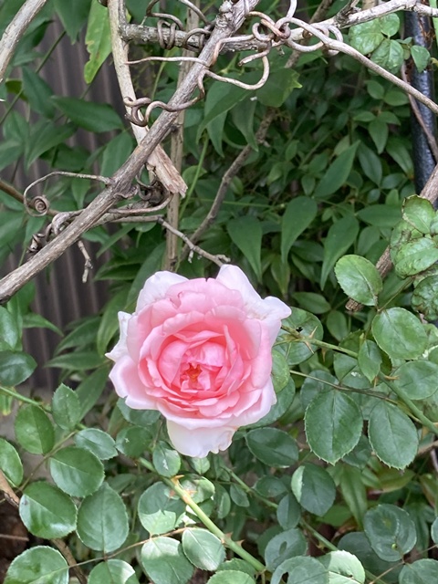 倉庫の裏庭にバラが一輪だけ咲いていました