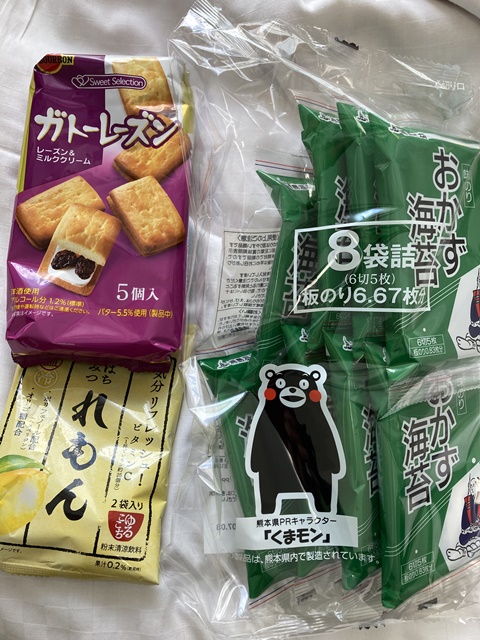 今回は前回忘れた「海苔」を、他に、レトルトぜんざいやプリンを