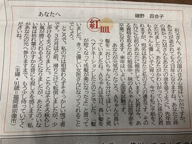 西日本新聞の記事「紅皿」です