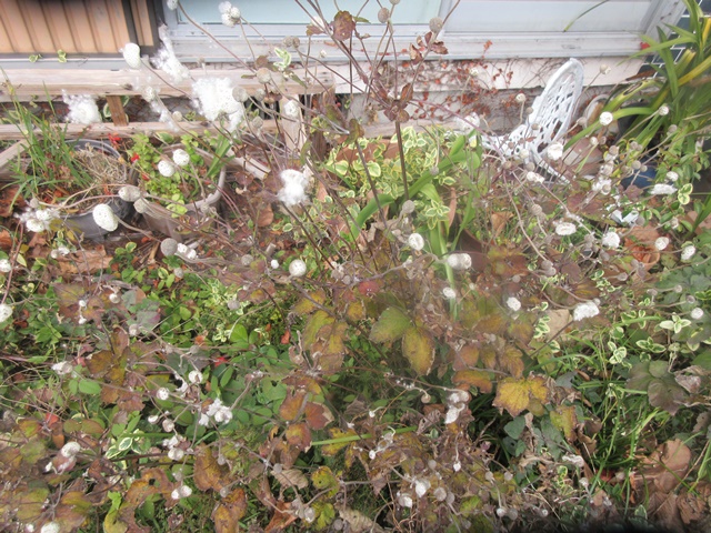 倉庫の裏庭のシュウメイギクが枯れましたが