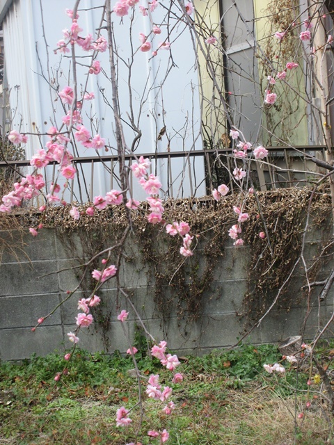 倉庫の裏庭の梅が咲きました