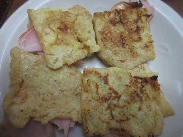 中にハムとチーズと、、なんと、お菓子の