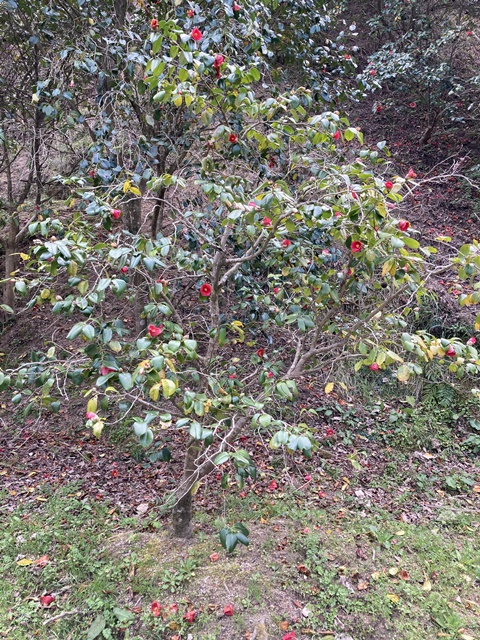 油山の舗装路のほぼ一番高い場所に咲いている椿です