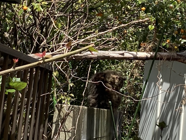 いつもの狸顔の野良猫が