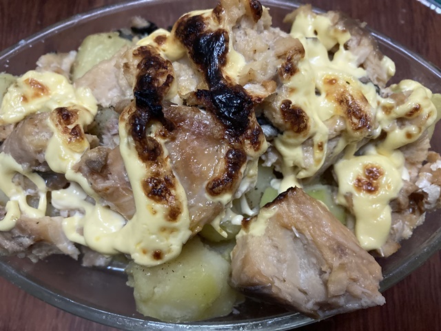 ジャガイモとシャケの水煮缶のオーブン焼きを、、
