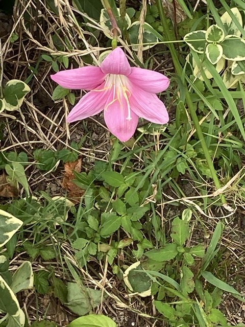 倉庫の裏庭にレインリリーがまた咲きました