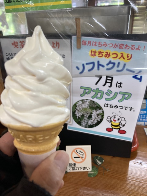 で、当然、暑いけど外のベンチでソフトは頂きました