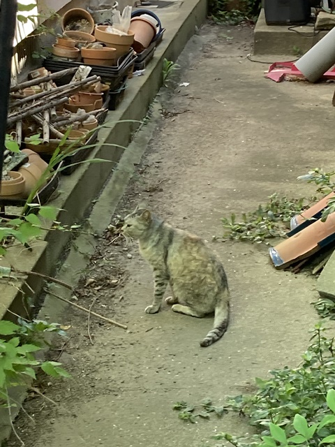 倉庫の裏庭にまた、グレーのノラネコが、、