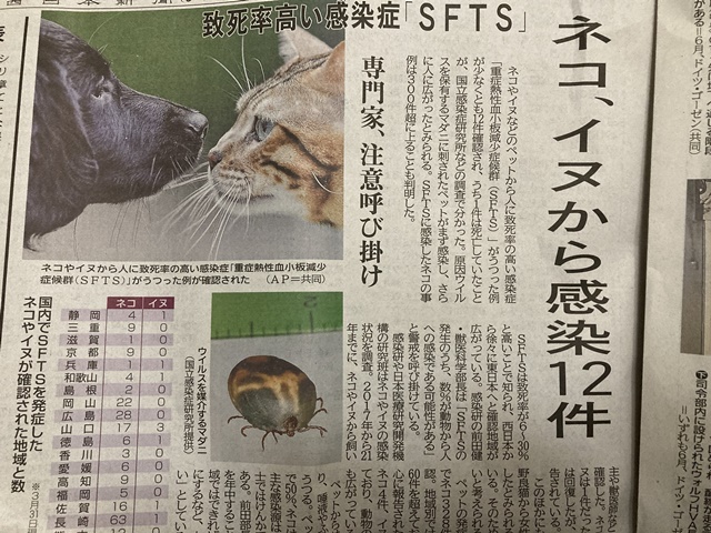 マダニから犬、ネコにうつり、、それが人間に、、、