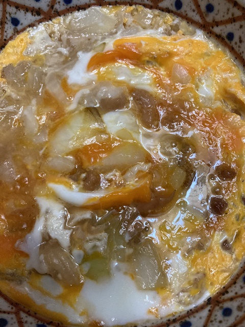 焼き肉、卵雑炊、シャケの塩焼き、ザルソバ