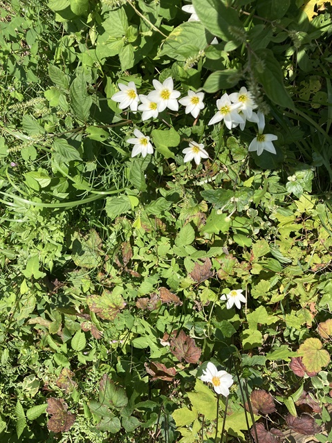 倉庫の裏庭にシュウメイギクが1輪咲きました
