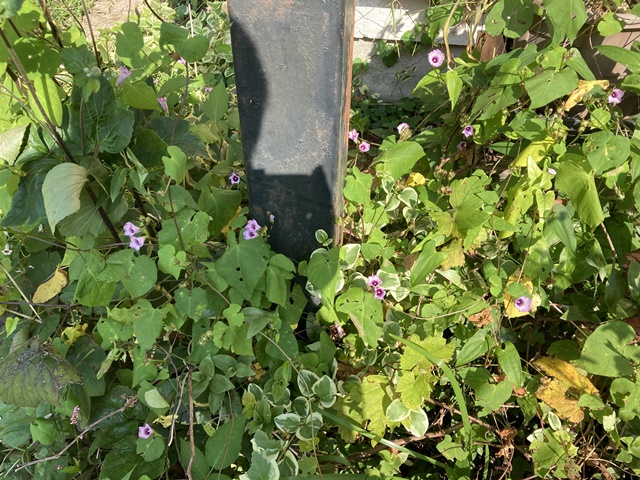 倉庫の裏庭にアサガオが咲きました