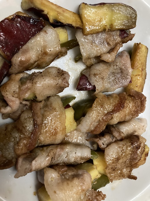 「サツマイモとパブリカの豚肉巻き」でしたが
