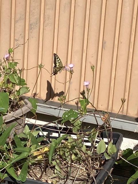 アサガオにアゲハチョウが