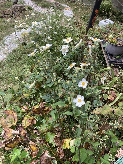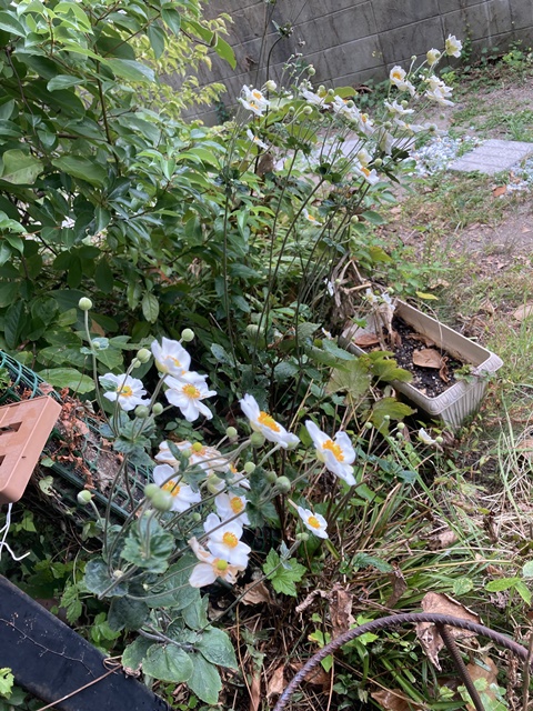 倉庫の裏庭に、シュウメイギクが咲き始めました