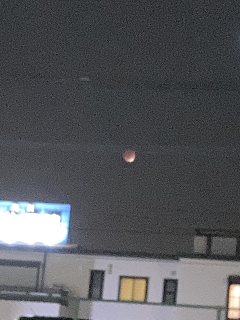 月食を駐車場から写しました