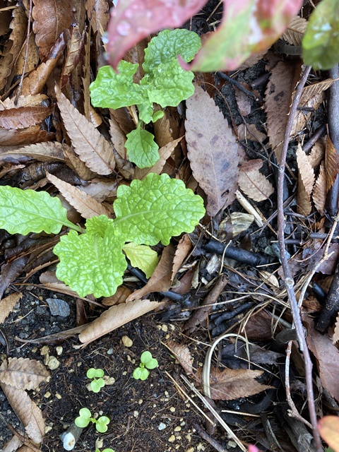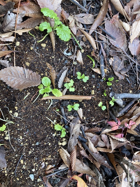 菜の花の種から芽が出て、だいぶ大きくなった