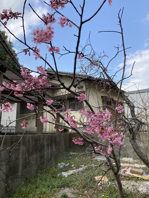 倉庫の裏庭の小さい方の桜の樹が