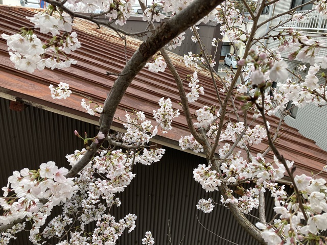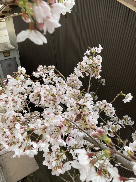 倉庫の裏庭の桜が満開に