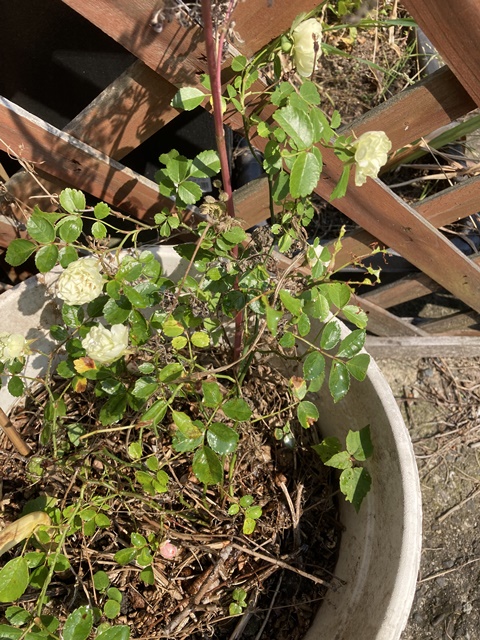 倉庫の裏庭のモッコウバラ?が咲きました。