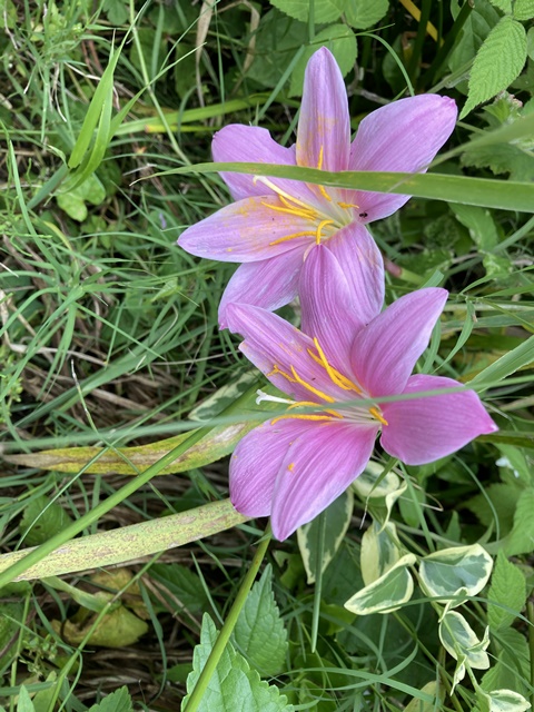 倉庫のレインリリーが咲きました