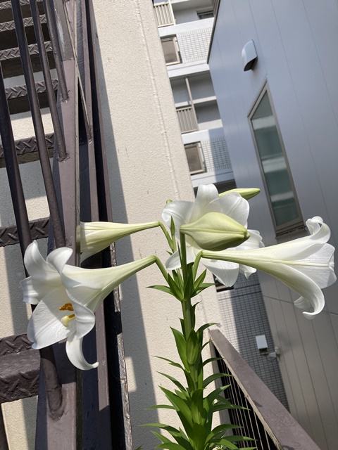 自宅、2階の中庭のユリが