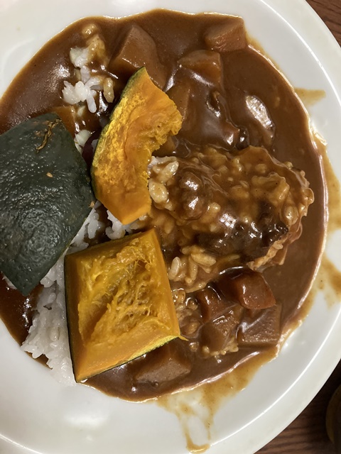 レトルトカレーにカボチャをいれました。