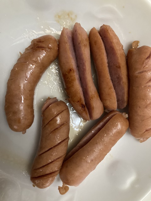 シーチキン丼にウインナーと目玉焼きにサンマの缶づめ