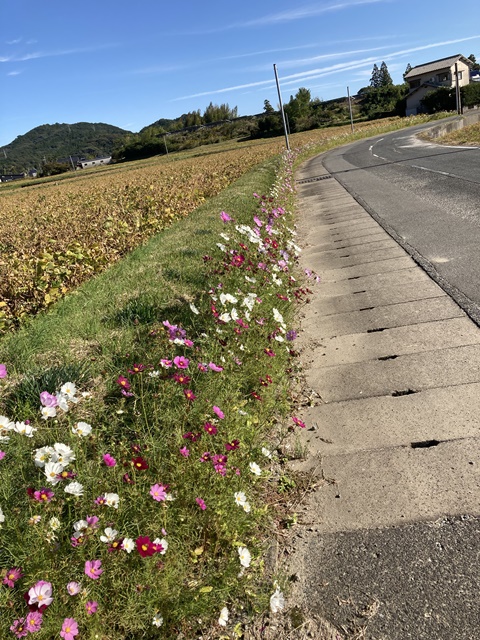 旧道のコスモス