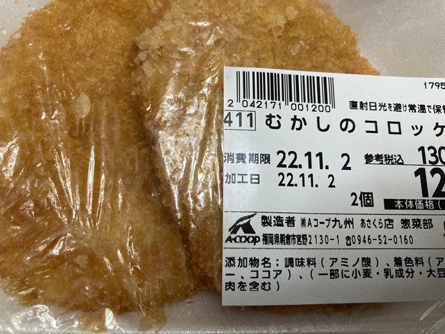 で、次の朝倉農協で昔コロッケ2個の昼食