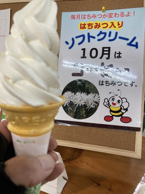 藤井のハチミツでソフトクリームをいただきます