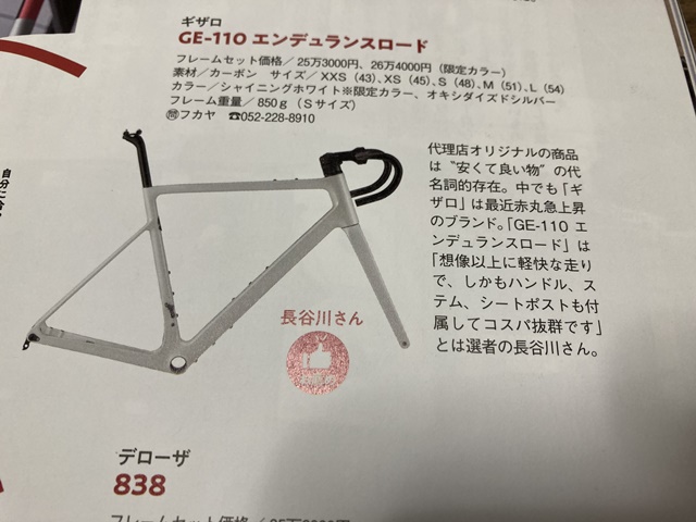 ギザロGE-110 エンデュランスロード のカーボンフレーム