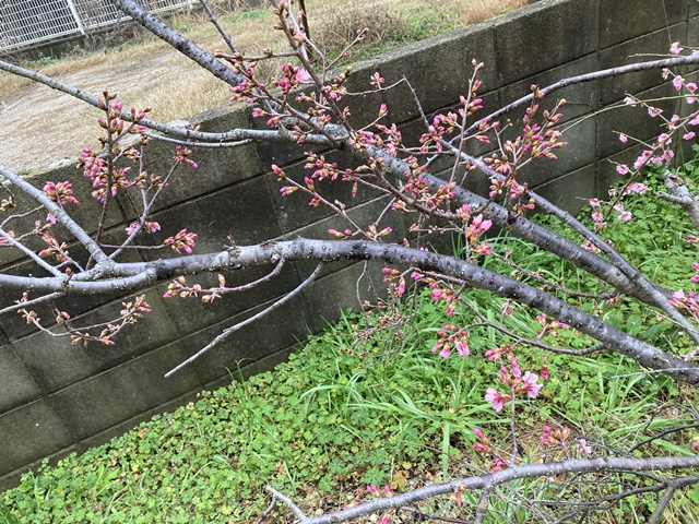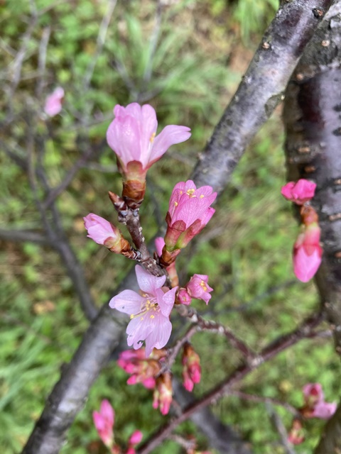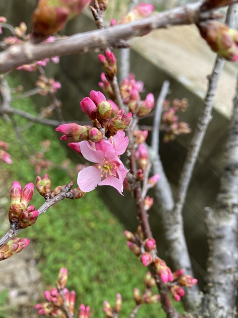 倉庫の裏庭に、今朝、桜が数輪咲いていました