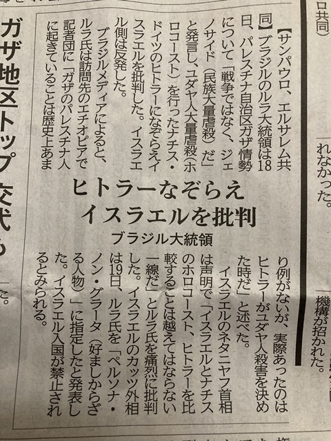 ブラジル大統領 ヒトラーなぞらえイスラエル非難