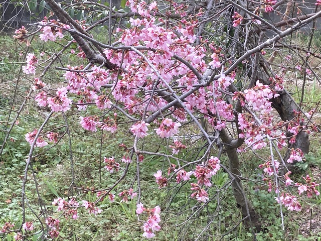倉庫の裏庭の小さなサクラの樹が満開になりました、、
