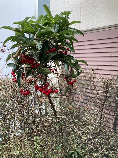 春が来ました、、ただ、万両は植えていないが、、
