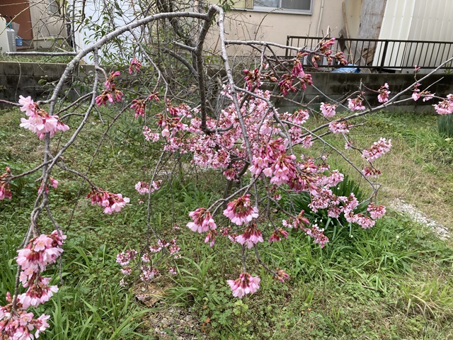 倉庫の裏庭のサクラが先週は満開だと