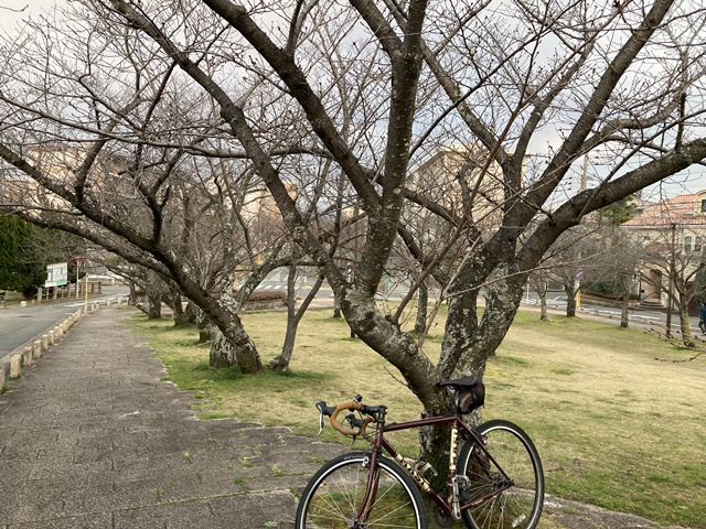 風がだいぶ収まったので、シクロクロスに乗りお花見へ、、で