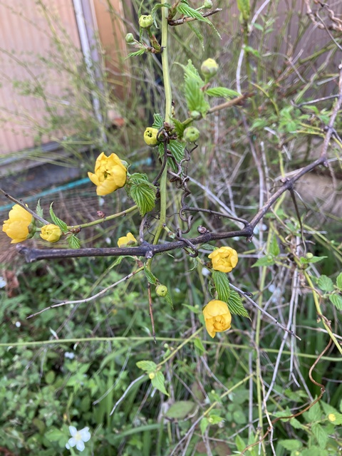 ツルニチソウ、それにヤエヤマブキも咲きだして香りに誘われたのか?