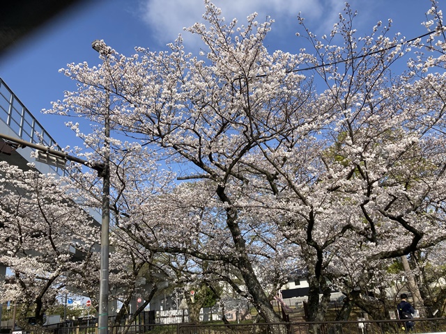 店の前のサクラ満開で