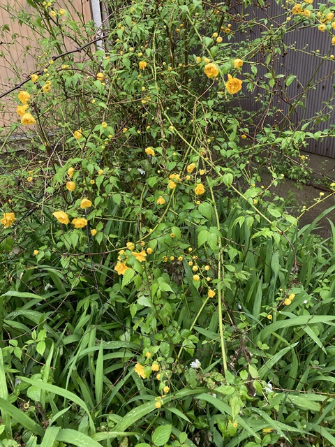 倉庫の裏庭にヤエヤマブキが咲き出しました