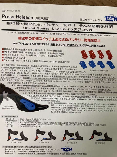 「輪行袋を開けたら、バッテリー切れ、そんな悲劇を解消」とか