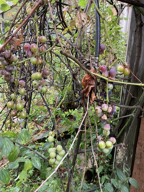 倉庫の裏庭に葡萄がたくさんなりました、が