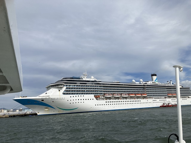 博多ふ頭に、大きな中国からの観光に来た客船でしょうか