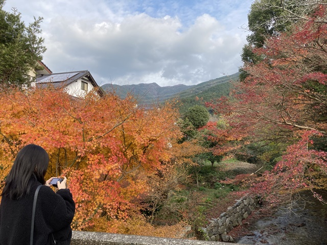 杉の馬場の手前の小川の石橋から、モミジを、、、