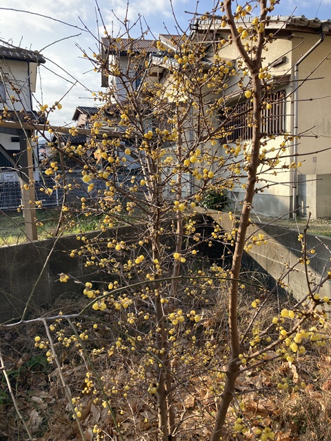 倉庫の裏庭にロウバイが咲きました