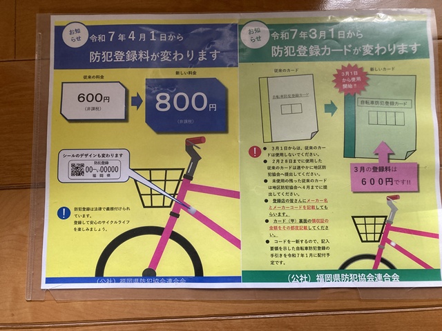 4月1日より、防犯登録料金が値上げになります