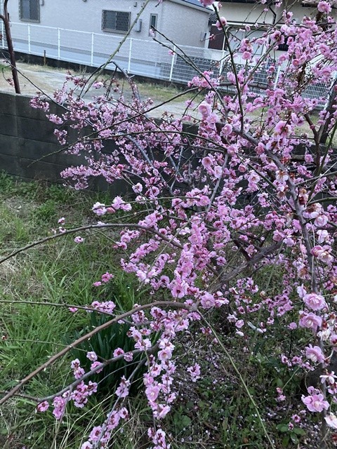 倉庫の裏庭の梅が満開